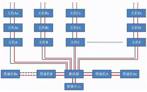 3.當(dāng)主機(jī)較多時(shí),可以考慮用集成線器做多路分支來解決。