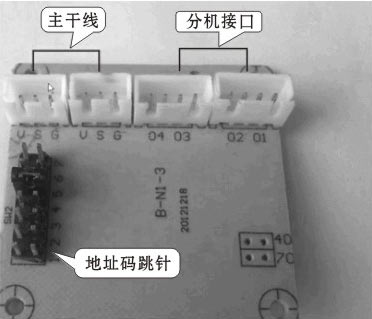 樓層和戶(hù)數(shù)符合標(biāo)準(zhǔn),可直接通過(guò)設(shè)置解碼器地址碼跳針(1. 2.3.4、5. 6. 7插針)來(lái)設(shè)置房號(hào),解碼器板子如下圖所示: