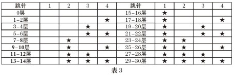 注:該表是樓層號(hào)的設(shè)置,打“★”表示該跳針短路(短路即是插針帽兩針插上)兩層共用一個(gè)解碼器的房間號(hào)編碼表如下表4所示:
